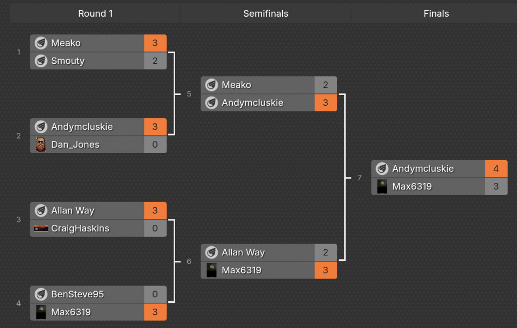 For the overs we saw Andy Mcluskie taking the winning spot winning £10 with Max taking runners up and winning £3 his entry back.