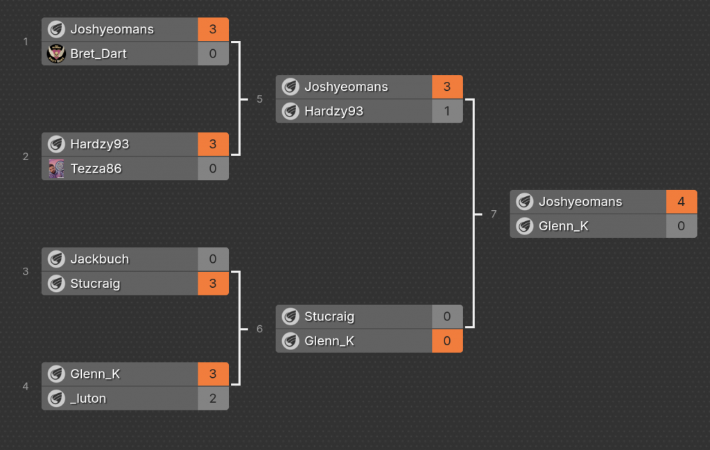 As it draws to a close the winner of the Under 55 was Joshy winning £10 on the night with Glenn taking runners up place winning his entry back.