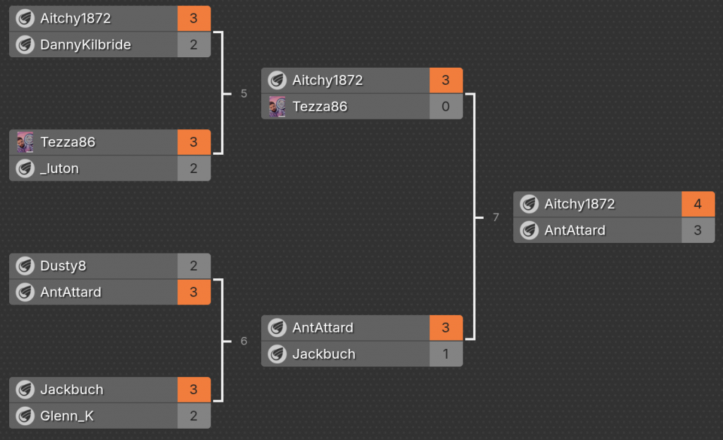 We saw 10 players in the under 55 average group, Aitchy1872 taking the winning spot with Antatard in runners up.