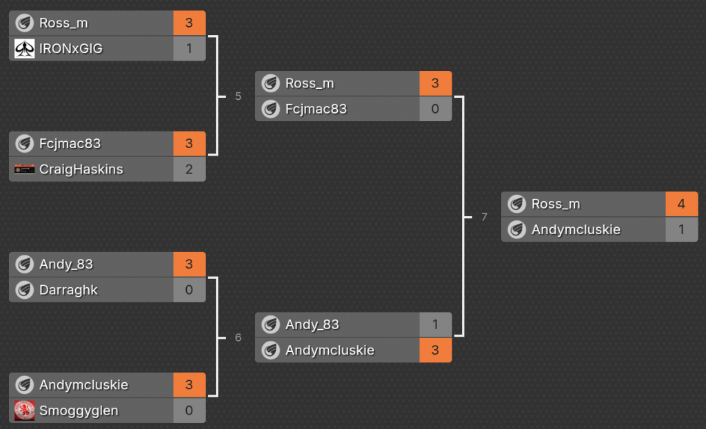 Ross taking the winning spot and again Andy Mcluskie taking runners up